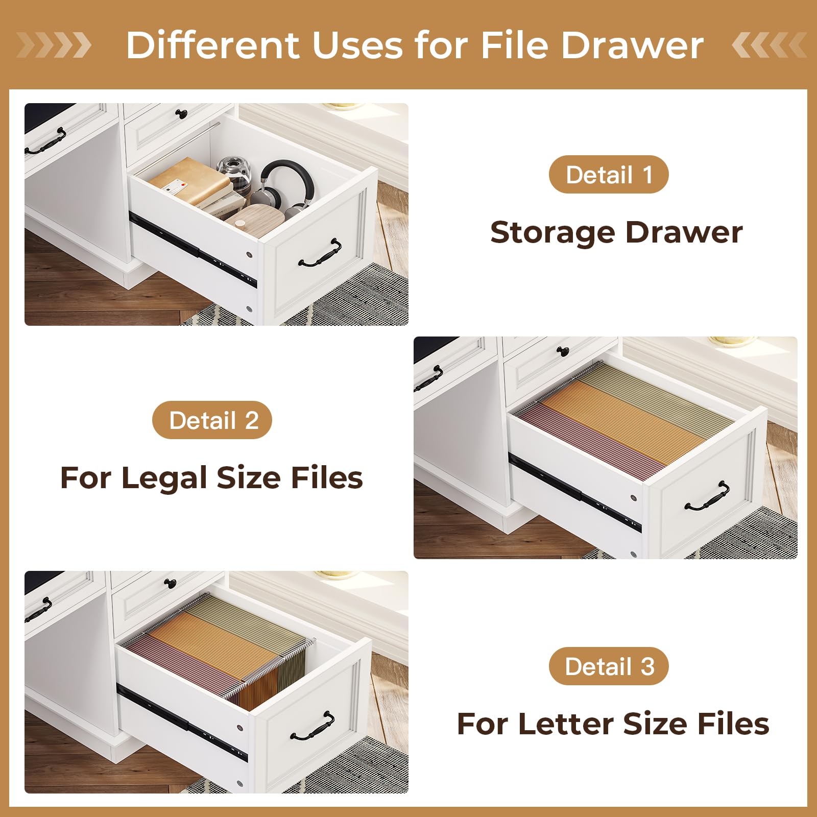 - It has 5 drawers and storage cabinets to hold plenty of files, books, and other office essentials. The other three drawers have metal glides and safety stops to keep you and your family safe!