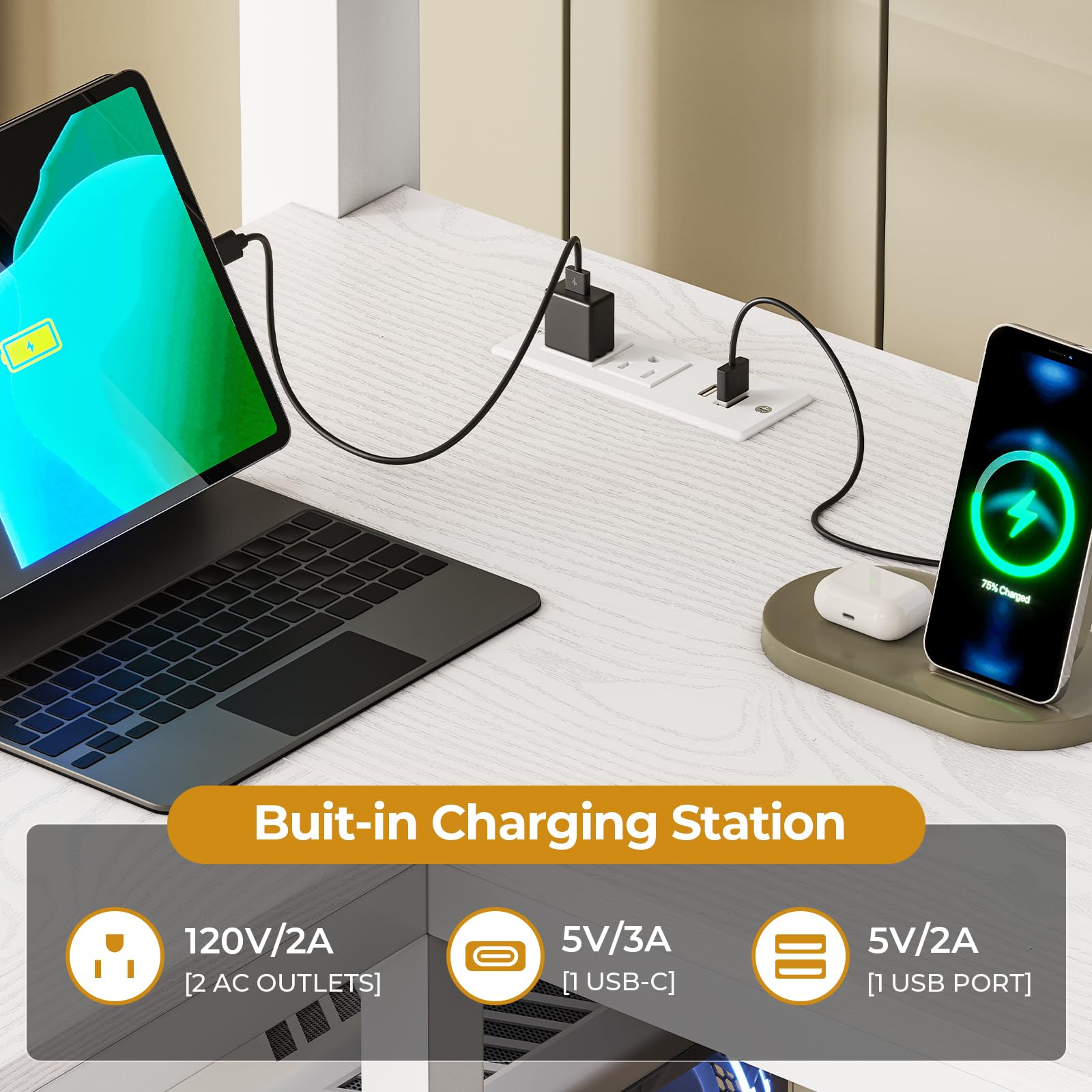 - The table has a built-in plug that includes 1 type-c port, 1 USB port and 2 AC outlets for easy charging of your gaming gear, tablet, printer or cell phone.